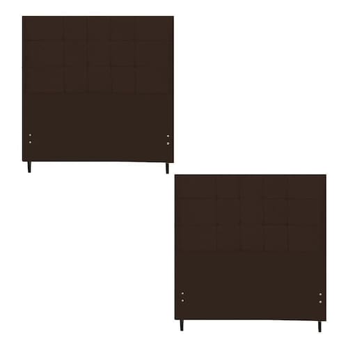 Kit Cabeceira Barceloma Estofada Casal 144Cm Marrom Botão Tecido + Cabeceira Barcelona Solteiro 94Cm Marrom