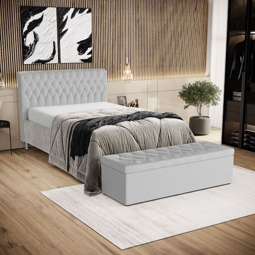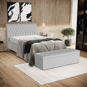 O Kit Bellatrix junto com a Calçadeira Sagitarius foi inspirada para você, que busca um alto estilo, design e um ótimo custo benefício. Ela possui detalhes em capitonê e um ótimo acabamento, junto com a calçadeira que possui um design único que dão um toque de sofisticação .O produto possui dois pés de 12 cm e 2 frames para a sustentação do box, não sendo necessário furar a sua cama, apenas encaixa-la nos suportes da cabeceira. Adquira já!