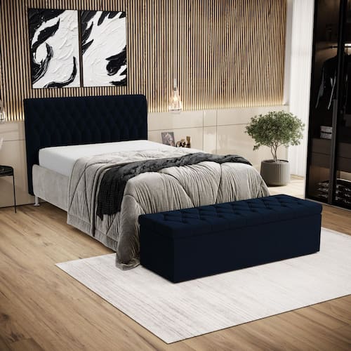 Kit Cabeceira Bellatrix 160 e Calçadeira Sagitarius Sued Aradecor - Azul Marinho