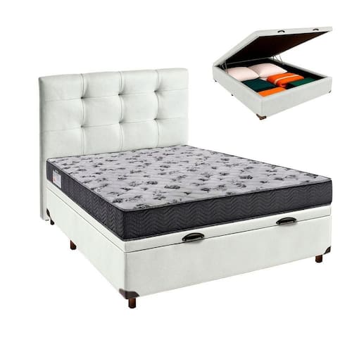Espuma com suporte firme que auxilia no alinhamento da coluna Base baú Casal com 37cm de altura e amplo espaço interno para organização