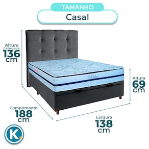 Conjunto Casal Colchão Blue + Cama Box BauColchão Casal com 32cm de altura, oferecendo conforto elevado e presença imponenteRevestido em poliéster resistente, com toque agradável e ótima durabilidadeSuporte para até 150kg, ideal para quem busca firmeza e resistênciaBase baú casal com 37cm de altura e amplo espaço interno para organizaçãoRevestimento em Veludo , fácil de limpar e com visual modernoEstrutura reforçada com capacidade para até 150KgFicha Técnica Colchão:Modelo: BlueMarca: ParopasTamanho: CasalTecido: PoliésterLargura: 138cmComprimento: 188cmAltura: 32cmSuporte de Peso: 150KgGarantia: 3 MesesFicha Técnica Cama Box Bau:Modelo: PopMarca: NatureTamanho: CasalTecido: VeludoLargura: 138cmComprimento: 188cmAltura: 30cmAltura dos Pés: 7cmMaterial dos Pés: MadeiraSuporte de Peso: 150KgPeso: 35KgGarantia: 3 MesesAtenção:Antes da compra certifique-se de que o produto passa por elevadores, portas e corredores.As transportadoras não realizam entregas por escadas ou içamentos.Caso o item não caiba no elevador, a entrega será considerada concluída no térreo do prédio.A cor e tonalidade do produto pode variar de acordo com o dispositivo que o usuário está acessando.