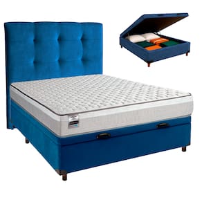 Kit Cabeceira + Cama Box Bau + Colchão Casal Molas Ensacadas Hanover Inducol - Azul
