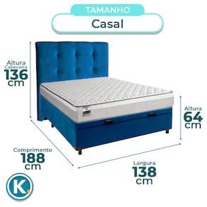 Conjunto Casal Colchão Hanover + Cama Box BauColchão Casal com 22cm de altura, ideal para conforto e praticidade no dia a diaRevestimento em Jacquard e Poliéster, unindo sofisticação e resistênciaSuporte de até 130kg, oferecendo firmeza e segurança para diferentes perfisBase baú casal com 42cm de altura e amplo espaço interno para organizaçãoRevestimento em Veludo , fácil de limpar e com visual modernoEstrutura reforçada com capacidade para até 150KgFicha Técnica Colchão:Modelo: HanoverMarca: InducolTamanho: CasalTecido: Jacquard/PoliésterLargura: 138cmComprimento: 188cmAltura: 22cmSuporte de Peso: 130KgGarantia: 3 MesesFicha Técnica Cama Box Bau:Modelo: EliteMarca: NatureTamanho: CasalTecido: VeludoLargura: 138cmComprimento: 188cmAltura: 35cmAltura dos Pés: 7cmMaterial dos Pés: MadeiraSuporte de Peso: 150KgPeso: 35KgGarantia: 3 MesesAtenção:Antes da compra certifique-se de que o produto passa por elevadores, portas e corredores.As transportadoras não realizam entregas por escadas ou içamentos.Caso o item não caiba no elevador, a entrega será considerada concluída no térreo do prédio.A cor e tonalidade do produto pode variar de acordo com o dispositivo que o usuário está acessando.
