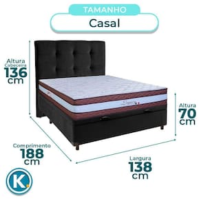 Suporte de até 150kg, ideal para quem busca firmeza e durabilidade Base baú casal com 42cm de altura e amplo espaço interno para organização