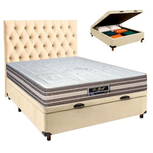 Kit Cabeceira + Cama Box Bau + Colchão Casal Molas Ensacadas Legriff Sankonfort Conjunto Casal Colchão Legriff + Cama Box Bau Colchão casal com 33cm de altura, imponência e conforto em um só produto