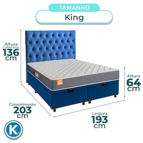 Kit Cabeceira + Cama Box Bau + Colchão King D23 Pro Inducol - Azul
