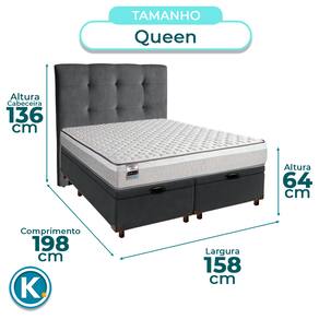 Conjunto Queen Colchão Hanover + Cama Box BauColchão Queen com 22cm de altura, ideal para conforto e praticidade no dia a diaRevestimento em Jacquard e Poliéster, unindo sofisticação e resistênciaSuporte de até 130kg, oferecendo firmeza e segurança para diferentes perfisBase baú Queen com 42cm de altura e amplo espaço interno para organizaçãoRevestimento em Veludo , fácil de limpar e com visual modernoEstrutura reforçada com capacidade para até 150KgFicha Técnica Colchão:Modelo: HanoverMarca: InducolTamanho: QueenTecido: Jacquard/PoliésterLargura: 158cmComprimento: 198cmAltura: 22cmSuporte de Peso: 130KgGarantia: 3 MesesFicha Técnica Cama Box Bau:Modelo: EliteMarca: NatureTamanho: QueenTecido: VeludoLargura: 158cmComprimento: 198cmAltura: 35cmAltura dos Pés: 7cmMaterial dos Pés: MadeiraSuporte de Peso: 150KgPeso: 40KgGarantia: 3 MesesAtenção:Antes da compra certifique-se de que o produto passa por elevadores, portas e corredores.As transportadoras não realizam entregas por escadas ou içamentos.Caso o item não caiba no elevador, a entrega será considerada concluída no térreo do prédio.A cor e tonalidade do produto pode variar de acordo com o dispositivo que o usuário está acessando.