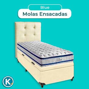 Kit Cabeceira + Cama Box Bau + Colchão Solteiro Molas Ensacadas Blue Paropas Conjunto Solteiro Colchão Blue + Cama Box Bau Colchão solteiro com 32cm de altura, oferecendo conforto elevado e presença imponente