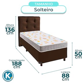 Conjunto Solteiro Colchão D20 + Cama BoxColchão solteiro padrão com 12cm de altura, ideal para uso leve e versátilTecido em poliéster com toque macio e fácil manutençãoSuporta até 40kg, indicado para crianças ou uso ocasionalBase box solteiro ideal para otimizar o espaço do quarto com praticidadeRevestimento em Material Sintético: fácil de limpar e com visual modernoEstrutura firme e resistente com suporte para até 150kgFicha Técnica Colchão:Modelo: D20Marca: InducolTamanho: SolteiroTecido: PoliésterLargura: 88cmComprimento: 188cmAltura: 12cmSuporte de Peso: 40KgGarantia: 3 MesesFicha Técnica Cama Box:Modelo: UniversalMarca: NatureTamanho: SolteiroTecido: Material Sintético Largura: 88cmComprimento: 188cmAltura: 25cmAltura dos Pés: 13cmMaterial dos Pés: MadeiraSuporte de Peso: 150KgPeso: 18KgGarantia: 3 MesesAtenção:Antes da compra certifique-se de que o produto passa por elevadores, portas e corredores.As transportadoras não realizam entregas por escadas ou içamentos.Caso o item não caiba no elevador, a entrega será considerada concluída no térreo do prédio.A cor e tonalidade do produto pode variar de acordo com o dispositivo que o usuário está acessando.
