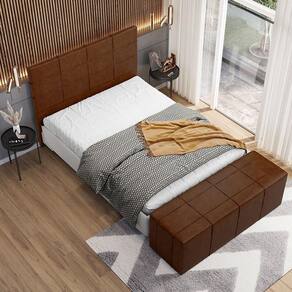 O Kit Cabeceira com Calçadeira Roma chegou para trazer a comodidade essencial para suas horas de descanso, além disso são elementos de destaque para qualquer quarto, proporcionando não apenas conforto mas também toques de elegância e requinte ao ambiente. Feito com materiais de alta qualidade, agregam um aspecto sofisticado e agradável ao toque, trazendo uma textura suave ao ambiente. Vale ressaltar seus detalhes em costura rebatida que elevam o charme das peças e incluem um acabamento impecável, sendo assim peças de arte que elevam o charme do ambiente aonde estiverem. Seja lendo, assistindo TV ou simplesmente descansando, suas superfícies estofadas lhe proporcionam um conforto excepcional, trazendo tranquilidade ao seu quarto. Adquira já o seu! Dimensões da Cabeceira (L x A x P) 195 x 120 x 8 cm Dimensões do Puff (L x A x P) 195 x 51 x 52 cm Dimensões do Frame (L x A x P) 5,5 x 13,5 x 16,5 cm Características da Cabeceira: Estrutura em Madeira reflorestada. Revestimento em Couríssimo na cor Marrom, com acabamento semi brilho. Estofada com Espuma D-20. Acompanha todos os acessórios para fixação. Pés em sapatas plásticas. Características do Puff: Estrutura em Madeira Reflorestada. Revestimento em Couríssimo na cor Marrom. Detalhes em Costura Rebatida, com ótimo acabamento. Estofado com Espuma D-23. Pés em Sapatas Plásticas. Características do Frame: Produzido em chapa de ferro 1,5 mm. Acabamento em esmalte PU na cor Alumínio. Acessórios para fixação: 04 Parafusos cabeça chata auto atarraxantes 5,0x25mm e 04 arruelas 1/4. - Por se tratar de estofado as medidas podem ter uma pequena variação de até 3 cm. - A tonalidade do produto real poderá ter ligeira variação devido o lote de tecidos. Observações importantes: - Produto para uso residencial em ambiente interno, não devendo ficar exposto diretamente ao sol, calor e umidade excessivos. - Pode haver alguma diferença de tonalidade entre a imagem e o produto real, por conta do tratamento de imagens e a calibração de cores do seu monitor. - As imagens são meramente ilustrativas, não acompanham objetos de decoração e eletrônicos. - Ao receber a mercadoria, o cliente deve verificar as condições da embalagem, caso haja alguma não assine o de . - Montagem, desmontagem e outras instalações serão de responsabilidade do cliente. Não nos responsabilizamos, no ato da , por subir escadas/elevadores ou pelo por guincho em apartamentos. Eventuais despesas são de responsabilidade do comprador. - Confira as dimensões do produto e certifique-se de que passará normalmente por supostos elevadores, portas, escadas e/ou corredores de sua residência. OriginState: PR | SupplierSimpleName: Kit Cabeceira Cama Box King 195cm com Calçadeira Roma W01 Couríssimo Marrom - Lyam | ProductWeight: 19 kg | ProductInstructions: Produto para uso em ambiente interno, nao devendo ficar exposto ao sol, calor e umidade excessivos. | ColorSupplier: Marrom | ColorFamily: Marrom | ProductHeight: 120 cm | Model: Roma | OriginCountry: | ProductContents: 01 Cabeceira e 01 Calçadeira | Material: Madeira | ProductLength: 52 cm | SizeDescription: Cabeceira: Altura 120 cm x Largura 195 cm x Profundidade 8 cm Puff: Altura 51 cm x Largura 197 cm x | ProductWarranty: 90 dias após o do produto | ProductWidth: 197 cm | Color: Marrom | MaterialFamily: Madeira | ColorSimple: Marrom
