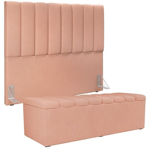 Kit Cabeceira Cama Box Casal 140 Cm Com Calçadeira Recamier Baú Dália W01 Linho Rosê - Lyam Decor