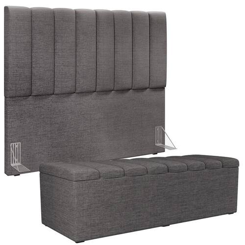 Kit Cabeceira Cama Box Casal 140cm Calçadeira Recamier Baú Dália W01 Linho Cinza Escuro - Lyam Decor