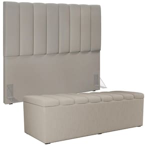 Kit Cabeceira Cama Box Casal 140cm E Calçadeira Recamier Baú Dália W01 Linho Bege - Lyam Decor
