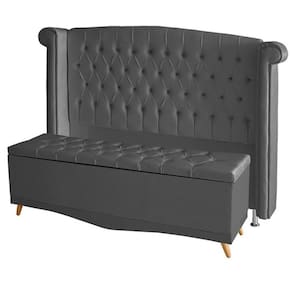 Kit Cabeceira De Cama E Calçadeira Baú Luxo King 195 Cm Suede Grafite Do Lar Móveis - Cinza