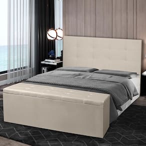 Kit Cabeceira e Calçadeira Baú Casal King 1,95m Berlim Material Sintético Bege Dal Poz Estofados