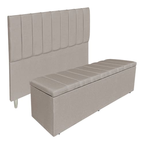 Era o que faltava para o seu quarto! A Cabeceira e Calçadeira Londres é a escolha perfeita para quem deseja transformar o quarto em um ambiente elegante e sofisticado. Com um design moderno e linhas harmoniosas, ela oferece um toque de requinte à decoração Medidas Cabeceira: Altura: 125cm Largura: 160cm Profundidade: 9cm Medidas Calçadeira: Largura: 160cm Altura: 53cm Profundidade: 44cmEspumas D-26 Acompanha: 1 kit fixação, 2 pés e 1 manual; Madeira: Selecionada de Eucalipto Tecido: Linho Garantia: 90 dias após o recebimento do produto. Instruções de Limpeza: Utilizar um pano limpo e seco. Não limpar com escovas ou produtos abrasivos. Observações importantes: - As imagens são meramente ilustrativas, não acompanham objetos de decoração e eletros; - As cores dos produtos podem sofrer alterações dependendo do seu monitor ou lote do tecido. - Todos os produtos vão embalados com total segurança; - Confira a embalagem e o produto no ato da entrega, caso o produto esteja avariado recuse imediatamente, coloque uma observação no verso da nota. - Não nos responsabilizamos no ato da entrega por montagens, desmontagens, instalações de produtos, nem utilização de guinchos ou equipamentos similares para acesso a pisos superiores em apartamentos. - Confira as dimensões do produto no momento da compra e certifique-se de que passará normalmente por escadas, elevadores, portas e corredores. Observando as orientações acima, evita-se futuros desagrados ou imprevistos com a entrega do produto. A MONTAGEM DO PRODUTO É DE RESPONSABILIDADE DO COMPRADOR, NÃO EFETUAMOS A MONTAGEM DO PRODUTO Marca: Dal Poz Estofados