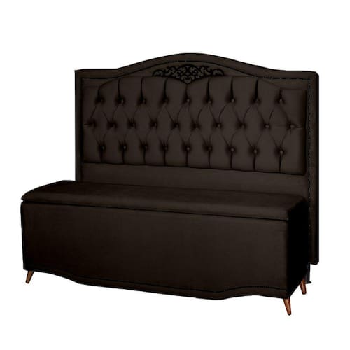 Kit Cabeceira e Calçadeira Baú Maitê Casal 140cm Veludo Marrom - Montanaris Decor