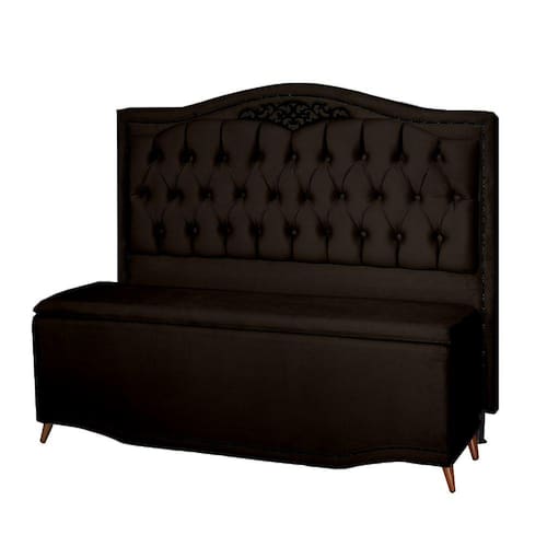 Kit Cabeceira e Calçadeira Baú Maitê Solteiro 90cm Veludo Preto - Montanaris Decor