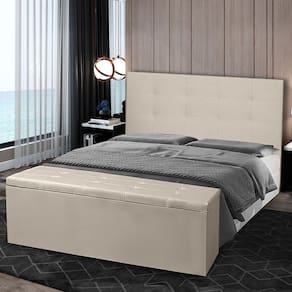 Confeccionados com material de alta qualidade, ambos os itens do kit apresentam acabamento com materias resistentes. A cabeceira serve como um elemento decorativo central, enquanto a calçadeira baú oferece uma solução prática para organizar roupas de cama, travesseiros e outros itens.