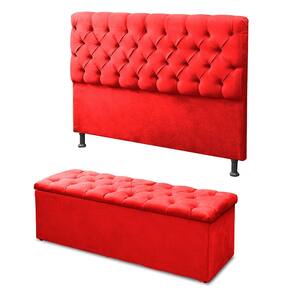 Kit Cabeceira e Calçadeira Baú Sofia Casal 140cm Veludo Vermelho - Montanaris Decor