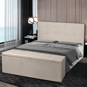 Era o que faltava para o seu quarto! O Kit Cabeceira e Calçadeira Báu vão deixar tudo mais bonito e arrumado, uma combinação perfeita de praticidade, conforto e sofisticação!   Medidas Cabeceira: Altura: 120cm Largura: 90cm Profundidade: 7cm   Medidas Calçadeira: Largura: 90cm Altura: 53cm Profundidade: 44cmEspumas D-26   Acompanha: 1 kit fixação, 2 pés e 1 manual;   Madeira: Selecionada de Eucalipto Tecido: Material Sintético   Garantia: 90 dias após o recebimento do produto.   Instruções de Limpeza: Utilizar um pano limpo e seco. Não limpar com escovas ou produtos abrasivos.   Observações importantes: - As imagens são meramente ilustrativas, não acompanham objetos de decoração e eletros; - As cores dos produtos podem sofrer alterações dependendo do seu monitor ou lote do tecido. - Todos os produtos vão embalados com total segurança; - Confira a embalagem e o produto no ato da entrega, caso o produto esteja avariado recuse imediatamente, coloque uma observação no verso da nota. - Não nos responsabilizamos no ato da entrega por montagens, desmontagens, instalações de produtos, nem utilização de guinchos ou equipamentos similares para acesso a pisos superiores em apartamentos. - Confira as dimensões do produto no momento da compra e certifique-se de que passará normalmente por escadas, elevadores, portas e corredores. Observando as orientações acima, evita-se futuros desagrados ou imprevistos com a entrega do produto. A MONTAGEM DO PRODUTO É DE RESPONSABILIDADE DO COMPRADOR, NÃO EFETUAMOS A MONTAGEM DO PRODUTO