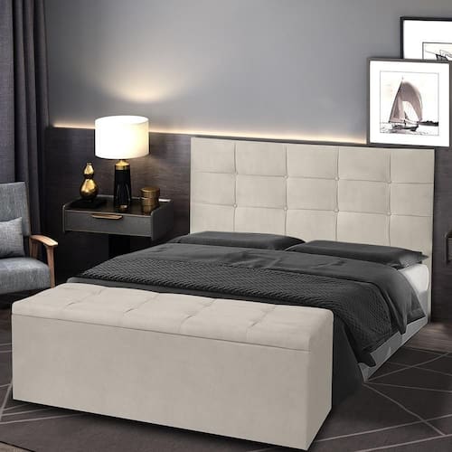 Com esse kit, você transforma o seu quarto em um espaço elegante e funcional, onde o conforto e o estilo se encontram harmoniosamente. O Kit Cabeceira e Calçadeira Baú Roma Suede é a escolha ideal para quem busca praticidade, beleza e qualidade em um único conjunto.