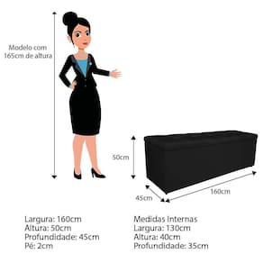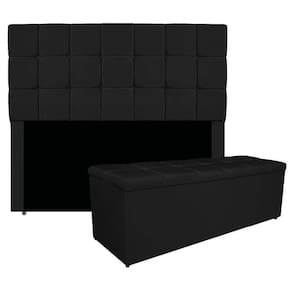 Kit Cabeceira E Calçadeira Manchester 160 Cm Queen Size Suede - Doce Sonho Móveis Cor Preto