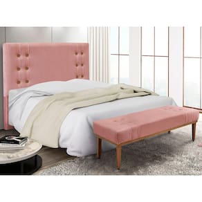 Kit Cabeceira e Calçadeira Recamier Casal 1,40m Gênova Veludo - Pallazio - Rosa