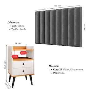 A Cabeceira Sophia possui um design modular, estofado em espuma e revestida com tecido suede. Seu modelo suspenso proporciona ajuste da altura conforme a necessidade de sua cama.