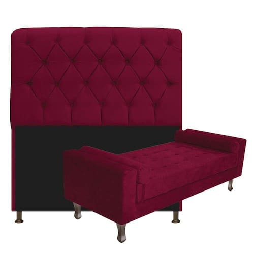 Kit Cabeceira Lady e Recamier Félix 100 Cm Solteiro Bordô