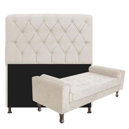Kit Cabeceira Lady E Recamier Félix 100 Cm Solteiro Corano Bege - Doce Sonho Móveis