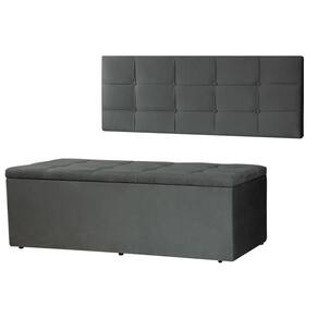 Kit Cabeceira Painel e Calçadeira Baú Casal King 1,95m Roma Suede Cinza Dal Poz Estofados
