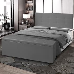 Kit Cabeceira Painel e Calçadeira Baú Casal Queen 1,60m Berlim Suede Cinza Dal Poz Estofados