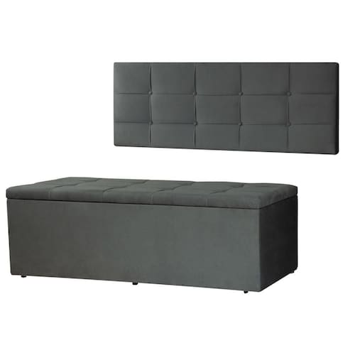 Kit Cabeceira Painel e Calçadeira Baú Casal Queen 1,60m Roma Suede Cinza Dal Poz Estofados