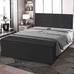 Kit Cabeceira Painel e Calçadeira Baú Solteiro 0,90m Berlim Material Sintético Preto Dal Poz Estofados