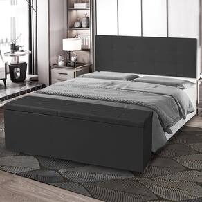 Kit Cabeceira Painel e Calçadeira Baú Solteiro 0,90m Berlim Suede Preto Dal Poz Estofados