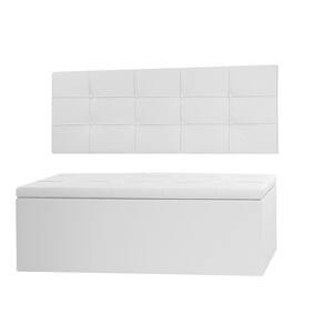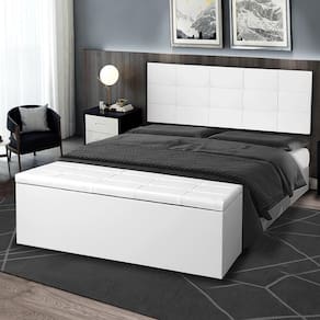 Kit Cabeceira Painel e Calçadeira Baú Solteiro 0,90m Roma Material Sintético Branco Dal Poz Estofados