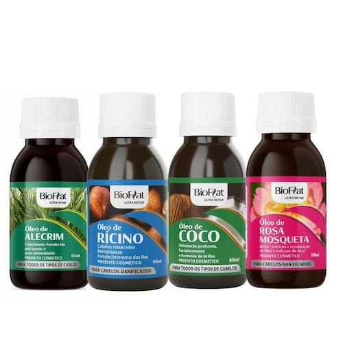 ITENS DO PEDIDO 01 Kit Oleo Capilar BioFlat Coco + Rícino + Alecrim + 1 Rosa Mosqueta 60ml cada Marca: Não Informado Ean: 7897551088594