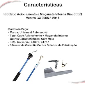 Kit com Cabo de Acionamento da Fechadura/Maçaneta + Maçaneta interna