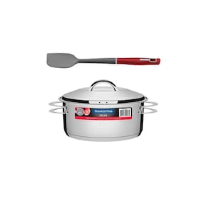Kit Caçarola Aço Inox Fundo Triplo Solar 4,7 Litros PIT 1 + Espátula Silicone Verano Vermelha Tramontina