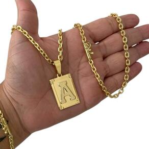 Kit Cadeado 4mm + Letra Personalizada Banhado a Ouro Detalhes do Produto: Material: ligas metálicas de alta qualidade, especialmente tratadas para fixação e absorção do ouro, com acabamento em verniz protetor. Aparência: visual idêntico ao ouro maciço. Produção: artesanal, com atenção meticulosa aos detalhes. Banho: 10 camadas espessas de ouro 18k, finalizadas com verniz antialérgico . Elos: soldados varia conforme o modelo . Pedras: zircônias brilhantes cravejadas quando aplicável . Tamanhos Disponíveis: Cordões Masculinos: 70cm padrão e 60cm sob consulta/Pedido Via Chat . Cordões Femininos: 50cm padrão e 45cm sob consulta/Pedido Via Chat . Pulseiras: 21cm padrão ; tamanhos de 18cm a 23cm sob consulta/Pedido Via Chat. Pingentes: conforme imagens; consulte para mais detalhes via chat. Espessuras Recomendadas para Cordões / Pingentes: P: 1mm a 4mm M: 4mm a 8mm G: 6mm a 13mm Gg: 12mm a 18mm Incluso na Compra: Saquinho de organza para armazenamento seguro. Caixa elegante, perfeita para presente. Cupom de desconto para a próxima compra. Flyer com outros produtos da coleção. Carta de agradecimento personalizada. Adesivo da marca ToJoia18k. Informações Adicionais: : 6 meses termos acompanham o produto . Devolução: 7 dias para devolução sem questionamentos. Envio: despacho em até 24 horas úteis após confirmação do pagamento. Cuidados com a Peça: Evite contato com produtos químicos; aguarde o perfume secar antes de usar. Evite contato com shampoo, condicionadores e suor excessivo. Armazene em local seco, preferencialmente no saquinho de organza fornecido. Uso no mar e piscina é permitido; lave com água corrente e sabão neutro após. Por que Escolher a ToJoia18k Semi-joias luxuosas que combinam estilo, qualidade e sofisticação. Banho espesso de ouro 18k, garantindo brilho duradouro e acabamento impecável. Design exclusivo e produção artesanal, perfeitos para qualquer ocasião. Materiais premium que asseguram durabilidade. Ao escolher uma semi-joia ToJoia18k, você investe em qualidade, elegância e uma experiência única. Aguardamos sua compra Observação: pode ocorrer variação no fecho raramente . Imagens reais, sem edição. Qualquer dúvida, estamos à disposição para esclarecimentos. Marca: Não Informado