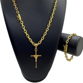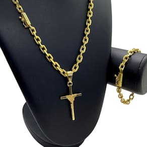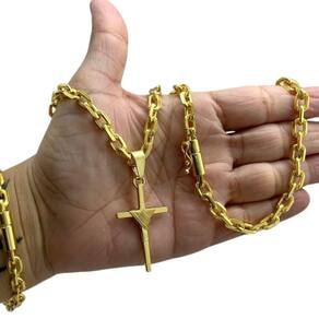 Kit Cadeado 7mm + Pingente Cruz Fio - Banhado a Ouro 18K Detalhes do Produto: Material: ligas metálicas de alta qualidade, especialmente tratadas para fixação e absorção do ouro, com acabamento em verniz protetor. Aparência: visual idêntico ao ouro maciço. Produção: artesanal, com atenção meticulosa aos detalhes. Banho: 10 camadas espessas de ouro 18k, finalizadas com verniz antialérgico . Elos: soldados varia conforme o modelo . Pedras: zircônias brilhantes cravejadas quando aplicável . Tamanhos Disponíveis: Cordões Masculinos: 70cm padrão e 60cm sob consulta/Pedido Via Chat . Cordões Femininos: 50cm padrão e 45cm sob consulta/Pedido Via Chat . Pulseiras: 21cm padrão ; tamanhos de 18cm a 23cm sob consulta/Pedido Via Chat. Pingentes: conforme imagens; consulte para mais detalhes via chat. Espessuras Recomendadas para Cordões / Pingentes: P: 1mm a 4mm M: 4mm a 8mm G: 6mm a 13mm Gg: 12mm a 18mm Incluso na Compra: Saquinho de organza para armazenamento seguro. Caixa elegante, perfeita para presente. Cupom de desconto para a próxima compra. Flyer com outros produtos da coleção. Carta de agradecimento personalizada. Adesivo da marca ToJoia18k. Informações Adicionais: : 6 meses termos acompanham o produto . Devolução: 7 dias para devolução sem questionamentos. Envio: despacho em até 24 horas úteis após confirmação do pagamento. Cuidados com a Peça: Evite contato com produtos químicos; aguarde o perfume secar antes de usar. Evite contato com shampoo, condicionadores e suor excessivo. Armazene em local seco, preferencialmente no saquinho de organza fornecido. Uso no mar e piscina é permitido; lave com água corrente e sabão neutro após. Por que Escolher a ToJoia18k Semi-joias luxuosas que combinam estilo, qualidade e sofisticação. Banho espesso de ouro 18k, garantindo brilho duradouro e acabamento impecável. Design exclusivo e produção artesanal, perfeitos para qualquer ocasião. Materiais premium que asseguram durabilidade. Ao escolher uma semi-joia ToJoia18k, você investe em qualidade, elegância e uma experiência única. Aguardamos sua compra Observação: pode ocorrer variação no fecho raramente . Imagens reais, sem edição. Qualquer dúvida, estamos à disposição para esclarecimentos. Marca: Não Informado
