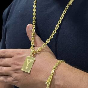 Kit Cadeado 7mm + Pingente Letra Banhado a Ouro 18K Detalhes do Produto: Material: ligas metálicas de alta qualidade, especialmente tratadas para fixação e absorção do ouro, com acabamento em verniz protetor. Aparência: visual idêntico ao ouro maciço. Produção: artesanal, com atenção meticulosa aos detalhes. Banho: 10 camadas espessas de ouro 18k, finalizadas com verniz antialérgico . Elos: soldados varia conforme o modelo . Pedras: zircônias brilhantes cravejadas quando aplicável . Tamanhos Disponíveis: Cordões Masculinos: 70cm padrão e 60cm sob consulta/Pedido Via Chat . Cordões Femininos: 50cm padrão e 45cm sob consulta/Pedido Via Chat . Pulseiras: 21cm padrão ; tamanhos de 18cm a 23cm sob consulta/Pedido Via Chat. Pingentes: conforme imagens; consulte para mais detalhes via chat. Espessuras Recomendadas para Cordões / Pingentes: P: 1mm a 4mm M: 4mm a 8mm G: 6mm a 13mm Gg: 12mm a 18mm Incluso na Compra: Saquinho de organza para armazenamento seguro. Caixa elegante, perfeita para presente. Cupom de desconto para a próxima compra. Flyer com outros produtos da coleção. Carta de agradecimento personalizada. Adesivo da marca ToJoia18k. Informações Adicionais: : 6 meses termos acompanham o produto . Devolução: 7 dias para devolução sem questionamentos. Envio: despacho em até 24 horas úteis após confirmação do pagamento. Cuidados com a Peça: Evite contato com produtos químicos; aguarde o perfume secar antes de usar. Evite contato com shampoo, condicionadores e suor excessivo. Armazene em local seco, preferencialmente no saquinho de organza fornecido. Uso no mar e piscina é permitido; lave com água corrente e sabão neutro após. Por que Escolher a ToJoia18k Semi-joias luxuosas que combinam estilo, qualidade e sofisticação. Banho espesso de ouro 18k, garantindo brilho duradouro e acabamento impecável. Design exclusivo e produção artesanal, perfeitos para qualquer ocasião. Materiais premium que asseguram durabilidade. Ao escolher uma semi-joia ToJoia18k, você investe em qualidade, elegância e uma experiência única. Aguardamos sua compra Observação: pode ocorrer variação no fecho raramente . Imagens reais, sem edição. Qualquer dúvida, estamos à disposição para esclarecimentos.