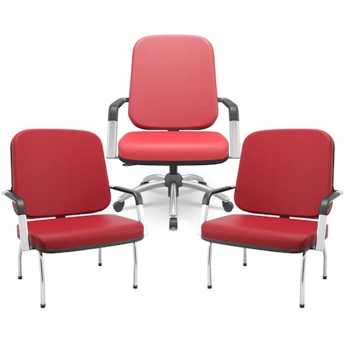 Cada peça combina um design moderno e robusto, projetado para atender às necessidades de pessoas sobrepeso, sem comprometer o estilo. As cadeiras fixas garantem estabilidade e apoio em momentos de conversa ou trabalho, enquanto a cadeira giratória oferece a liberdade de movimento e versatilidade, perfeita para dinâmicas de escritório. Todas com tapeçaria de alta densidade e acabamentos de qualidade, a fim de promover uma experiência de uso agradável e segura.