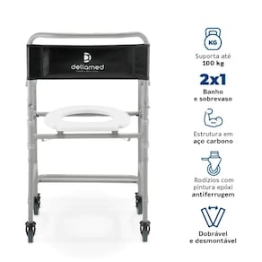 A Cadeira de Banho D30 Dellamed é prática, versátil e segura, oferecendo função 2 em 1: pode ser usada no banho