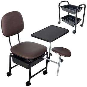 Kit de Cirandinha Manicure mais carrinho auxiliar com duas bandejasIdeal para Manicure e Pedicure, prática, compacta e resistente, seu espaço merece este confortoEste Kit compõe:1 Cirandinha Manicure1 Carrinho auxiliarMarca: For-ty Características Cirandinha:Estrutura metálica com pintura eletrostáticaEstofado em tecido Facto, o tecido Facto é resistente ao uso de Álcool 70 para limpeza e higienização. Apoio para as mãos articulável em MDF ou MDPApoio para o pé com regulagem de altura e inclinação - removível. Com regulagem de altura aproximada mínima de 52 e máxima de 69cm Gaveta em plástico reforçado, feita com matéria prima virgem - não é reciclado.A altura do assento ao chão é de 40 centímetros.Espumas do encosto e Assento dom Densidade 23Dimensões do assento: 3 alt x 40,5 larg x 43,5cm comp Dimensões do encosto: 2,5 alt x 29 larg x 37cm comp Dimensões aproximadas do apoio de mão: 0,41 Larg x 0,25cm comp Suporta até 100 kgDimensões da cirandinha montada: 72 alt x 43 larg x 47cm comp Peso do produto: 8 Kg Características Carrinho Auxiliar para ManicureEstrutura metálica em tubo 3/4 - mais largo que similares no mercadoPintura EletrostáticaPossui 2 bandejas plásticas feitas com matéria prima virgem - não é recicladoPossui Rodinhas que facilitam a movimentação do produto.Peso aproximado de 2 KgDimensões do carrinho Montado: 41 alt x 22 larg x 35cm comp Dimensões da embalagem do Kit: 41 alt x 44 larg x 47cm comp Peso aproximado do Kit:10 Kg
