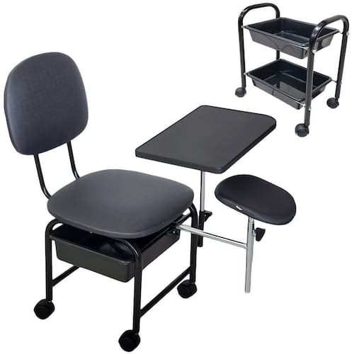 Kit de Cirandinha Manicure mais carrinho auxiliar com duas bandejasIdeal para Manicure e Pedicure, prática, compacta e resistente, seu espaço merece este confortoEste Kit compõe:1 Cirandinha Manicure1 Carrinho auxiliarMarca: For-ty Características Cirandinha:Estrutura metálica com pintura eletrostáticaEstofado em tecido Facto, o tecido Facto é resistente ao uso de Álcool 70 para limpeza e higienização. Apoio para as mãos articulável em MDF ou MDPApoio para o pé com regulagem de altura e inclinação - removível. Com regulagem de altura aproximada mínima de 52 e máxima de 69cm Gaveta em plástico reforçado, feita com matéria prima virgem - não é reciclado.A altura do assento ao chão é de 40 centímetros.Espumas do encosto e Assento dom Densidade 23Dimensões do assento: 3 alt x 40,5 larg x 43,5cm comp Dimensões do encosto: 2,5 alt x 29 larg x 37cm comp Dimensões aproximadas do apoio de mão: 0,41 Larg x 0,25cm comp Suporta até 100 kgDimensões da cirandinha montada: 72 alt x 43 larg x 47cm comp Peso do produto: 8 Kg Características Carrinho Auxiliar para ManicureEstrutura metálica em tubo 3/4 - mais largo que similares no mercadoPintura EletrostáticaPossui 2 bandejas plásticas feitas com matéria prima virgem - não é recicladoPossui Rodinhas que facilitam a movimentação do produto.Peso aproximado de 2 KgDimensões do carrinho Montado: 41 alt x 22 larg x 35cm comp Dimensões da embalagem do Kit: 41 alt x 44 larg x 47cm comp Peso aproximado do Kit:10 Kg
