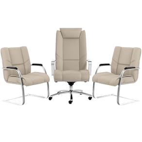 Trabalho, estudos e atividades corporativas, seja no escritório ou home office, precisam ser realizados com conforto e ergonomia para alcançarmos um bom desempenho. Pensada justamente para isso o Kit Cadeira Presidente Com 02 Cadeiras Fixas New Onix F02 Tecido Sintético Areia - Lyam Decor é a melhor opção para suprir suas necessidades e superar todas as expectativas.