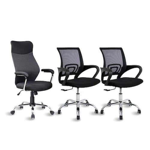 O Kit Cadeira Presidente e Cadeira Diretor 3 unidades Preto Healer é a melhor opção para deixar o seu escritório charmoso e moderno. As peças são confeccionadas com materiais de qualidade e possuem o conforto que você precisa para garantir um dia produtivo de trabalho.