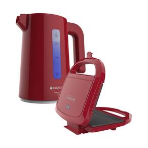 Kit Cadence Colors Vermelho: Chaleira Elétrica Thermo One Colors 1,7L e Sanduicheira Toast & Grill. Chaleira com resistência embutida, sistema luminoso e jarra independente. Sanduicheira com aquecimento duplo, chapas antiaderentes e 750W de potência.Tipo